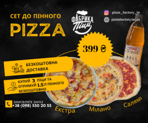 Ternopil Pizza Lieferung von "Pizza Factory" - unterhalten Sie sich und Ihre Lieben jetzt mit Ihrem Lieblingsgericht. Zögern Sie nicht, rufen Sie an oder füllen Sie das Formular auf der Website aus!