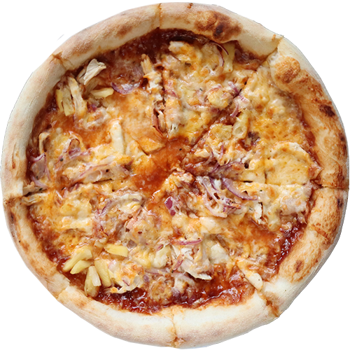 Bruststück, Huhn, Knoblauch, Ananas, blaue Zwiebel, Käse, Mozzarella
